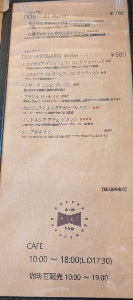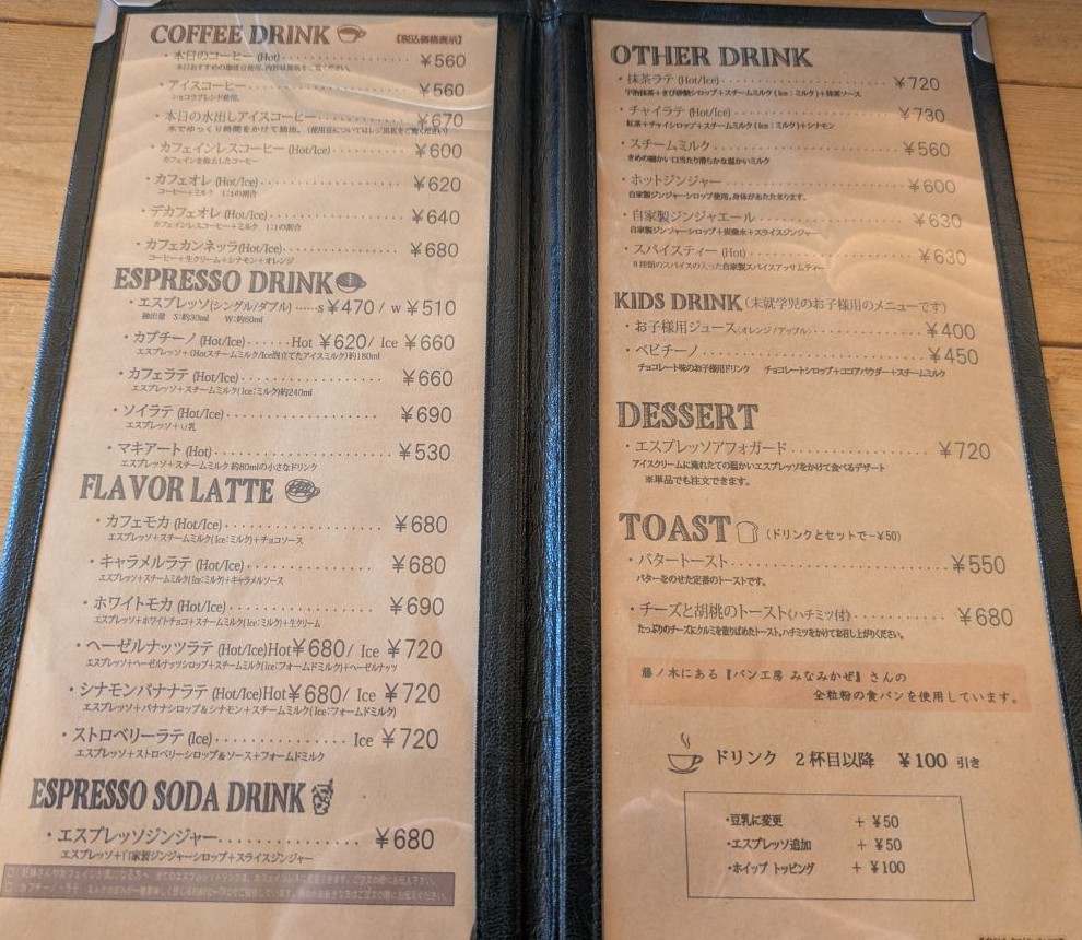 メニュー!もちろん珈琲は充実しています。純粋にコーヒー、カフェオレを楽しみながら充実した時間を過ごせます。